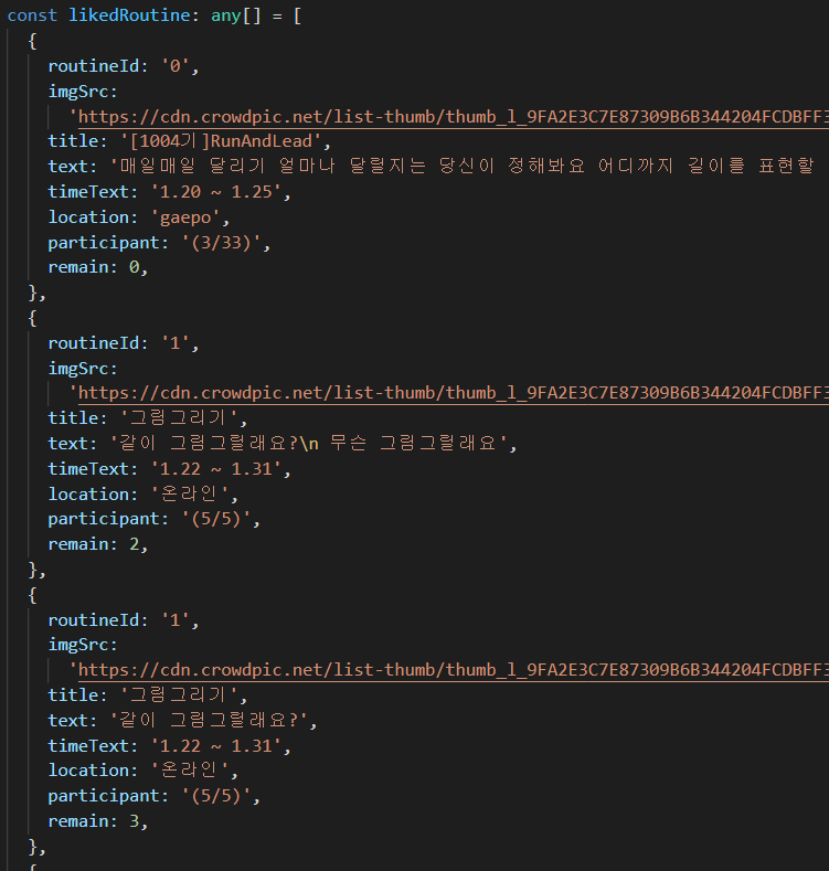 해당 배열을 props 로 전달하기 위해서 아래와 같이 전달을 하였고,