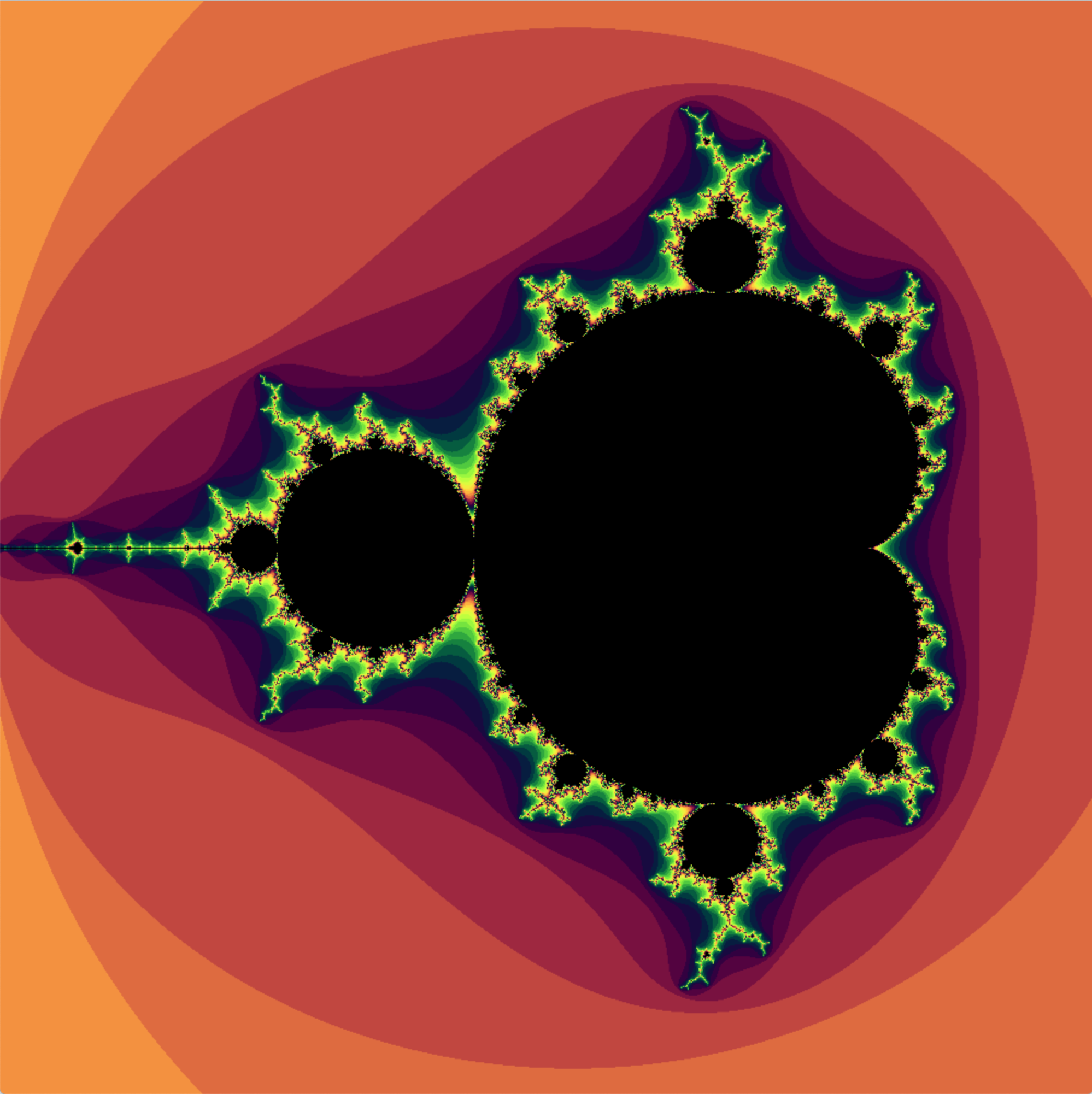 위와 같이 mlx 조작법을 이용해서 그리기 위해서는 좌표를 -2 ~ 2 을 기준 (위키피디아에서 보면 좌표가 X축에서 -2 ~ 1 이기에 개인적으로 판단) 창 너비를 1000pixel 고정 시켰다.