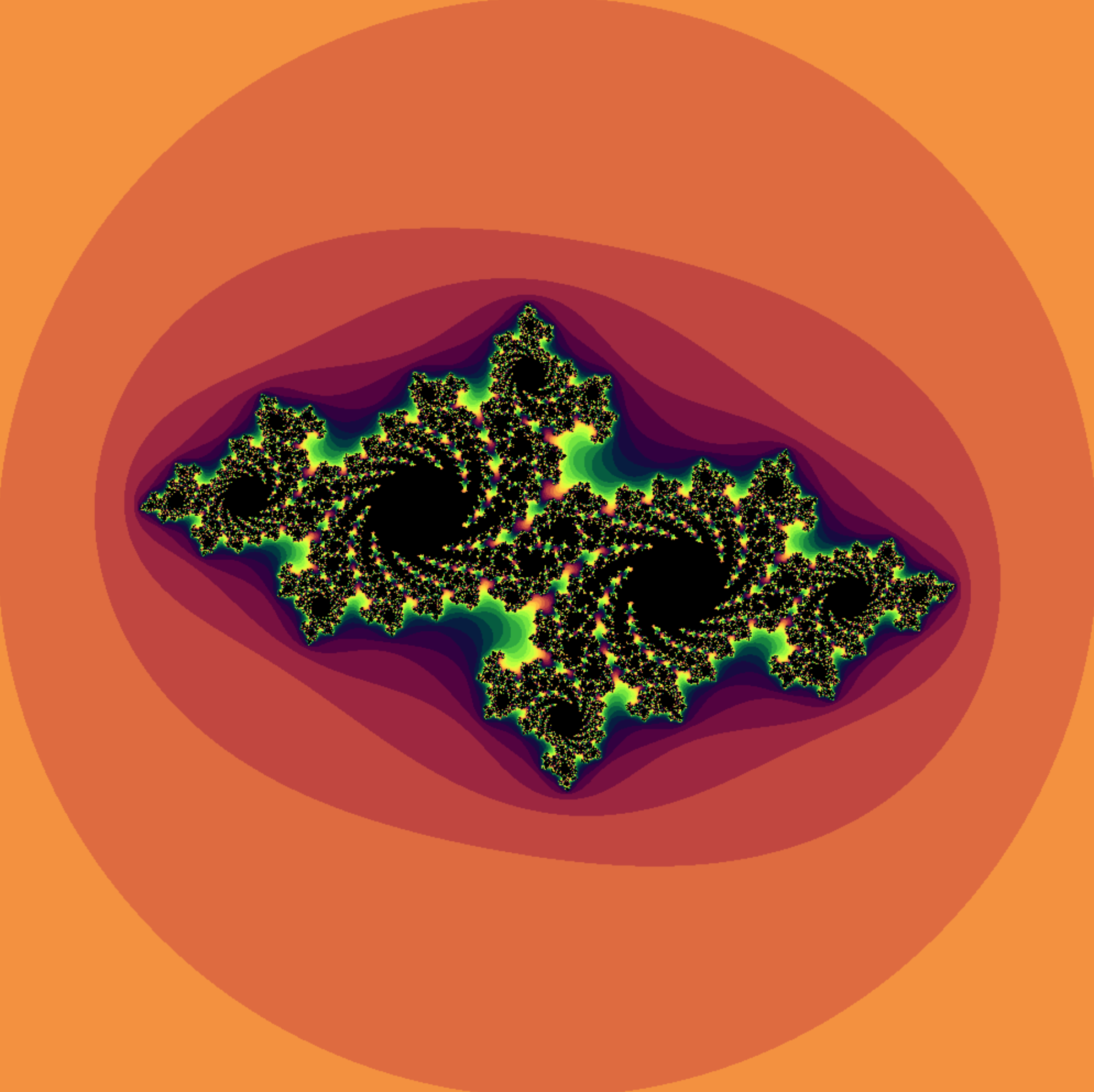 julia : 주어진 복소수 c에 대해서 다음 점화식에 따라 정의된 수열이 발산하지 않는 성질을 갖도록 하는 복소수 z의 집합