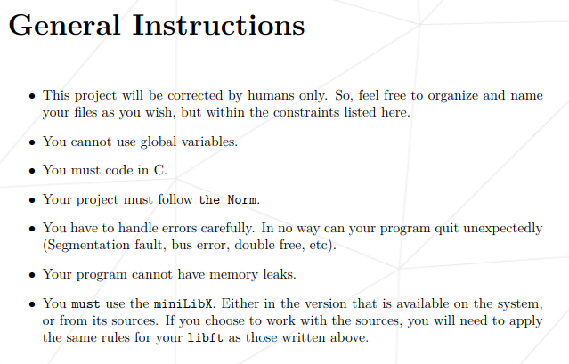 그리고 한 번의 평가에서 실패! 서브젝트에는 적혀있는 한 줄, 프로그램의 x버튼을 눌렀을 때, 깔끔하게 프로그램이 종료 되어야 한다는 문구가 있다. 그 부분은 mlx_hook 부분에서 해결할 수 있는 방법이 있었고,