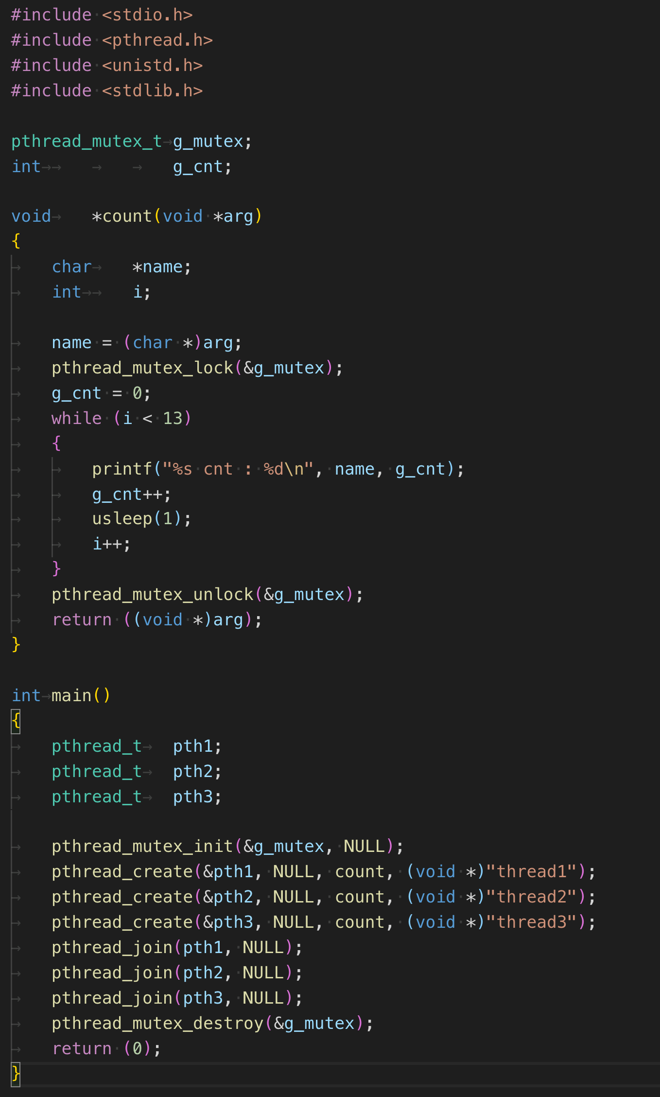 관련 정보를 읽다보면 운영체제 관련해서 너무 깊게 가는 것 같은 느낌에 졸음이 오는 14시 42분이였다. 일단 대략적으로 스레드와 mutex 역할은 알게 되었으니, 코드를 통해서 이해를 해보자