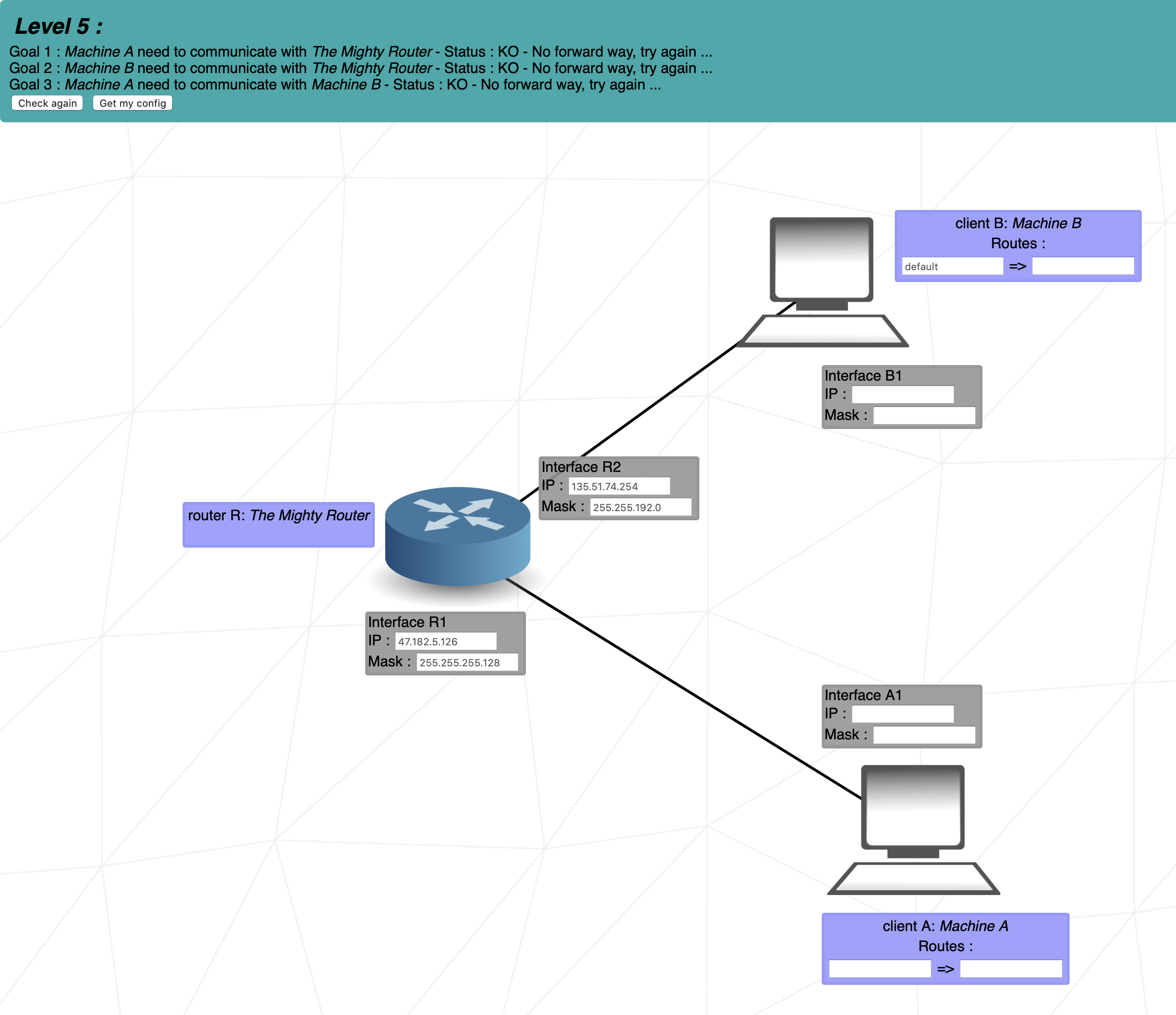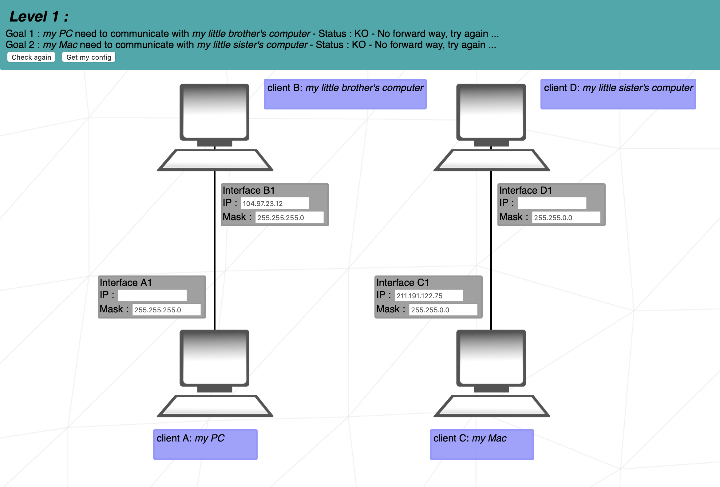 client A - client B 연결된 두 컴퓨터는 동일한 네트워크의 일부여야 합니다.