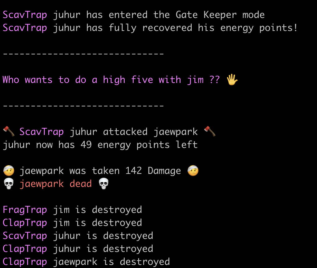 ScavTrap과 ClapTrap의 명확하게 표기를 하기 위해 출력을 ex00과는 다르게 수정을 하였습니다.