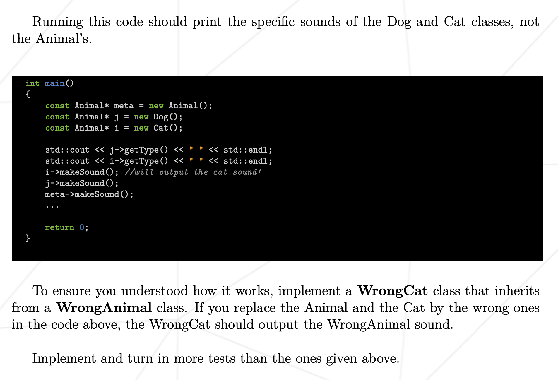 두 파생 클래스는 이름에 따라 유형 필드를 설정, Dog 유형은 Dog로 Cat 유형은 Cat으로 초기화해야 합니다.