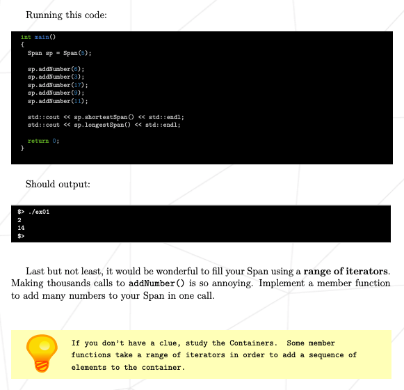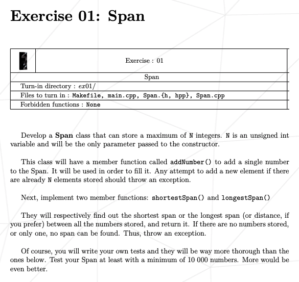 최대 N개의 정수를 저장할 수 있는 Span 클래스를 만듭니다. 변수 N은 unsigned int이며 생성자에게 전달되는 유일한 매개 변수입니다.