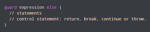Swift에서 guard는 특정 조건이 충족되지 않을 때 프로그램 제어를 범위 밖으로 옮기기 위해 명령문을 사용합니다