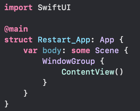 WindowGroup을 앱에서 제공하는 보기 계층의 컨테이너로 사용합니다. 그룹의 콘텐츠로 선언하는 계층은 앱이 해당 그룹에서 생성하는 각 창의 템플릿 역할을 합니다.