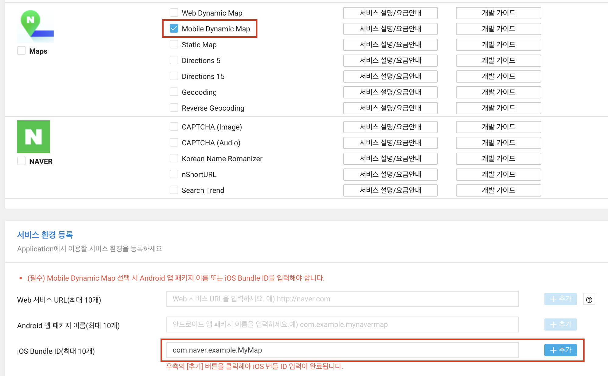 - 서비스 환경 등록 → iOS Bundle ID 추가