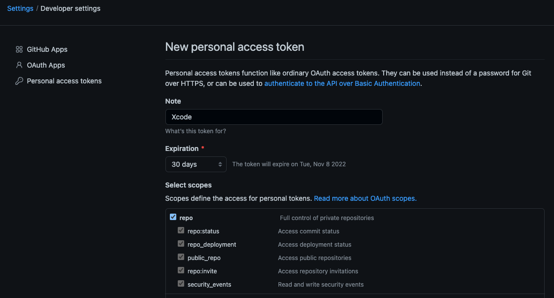 GitHub에서 로그인 후, 위와 같이 new token 값을 반아온 것을 Xcode로 돌아와서 입력하면 연동이 끝이 납니다.