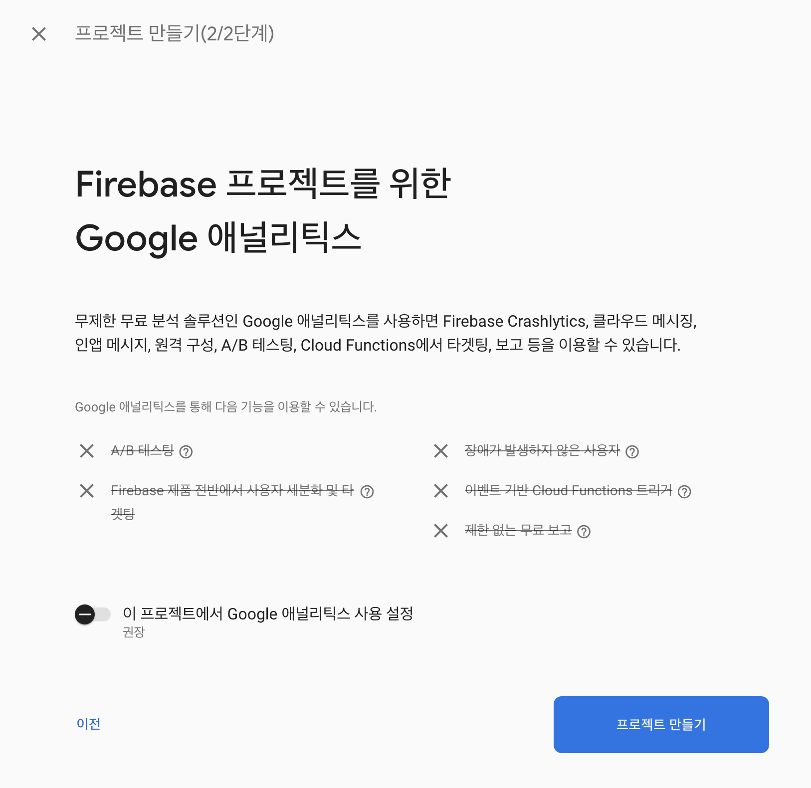 Google 애널리틱스를 사용하지 않을 거라서 선택하지 않았습니다.