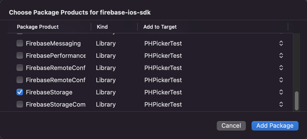 Firebase 라이브러리 중에서 Storage만 사용할 예정이기 때문에 해당 라이브러리만 설치를 합니다