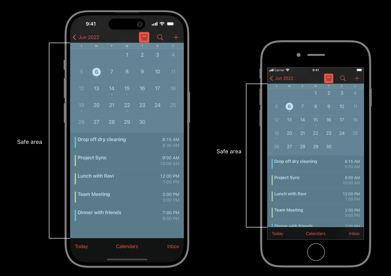 콘텐츠가 상태바, 네비게이션바, 툴바 등을 가리는 것을 방지하는 영역입니다.