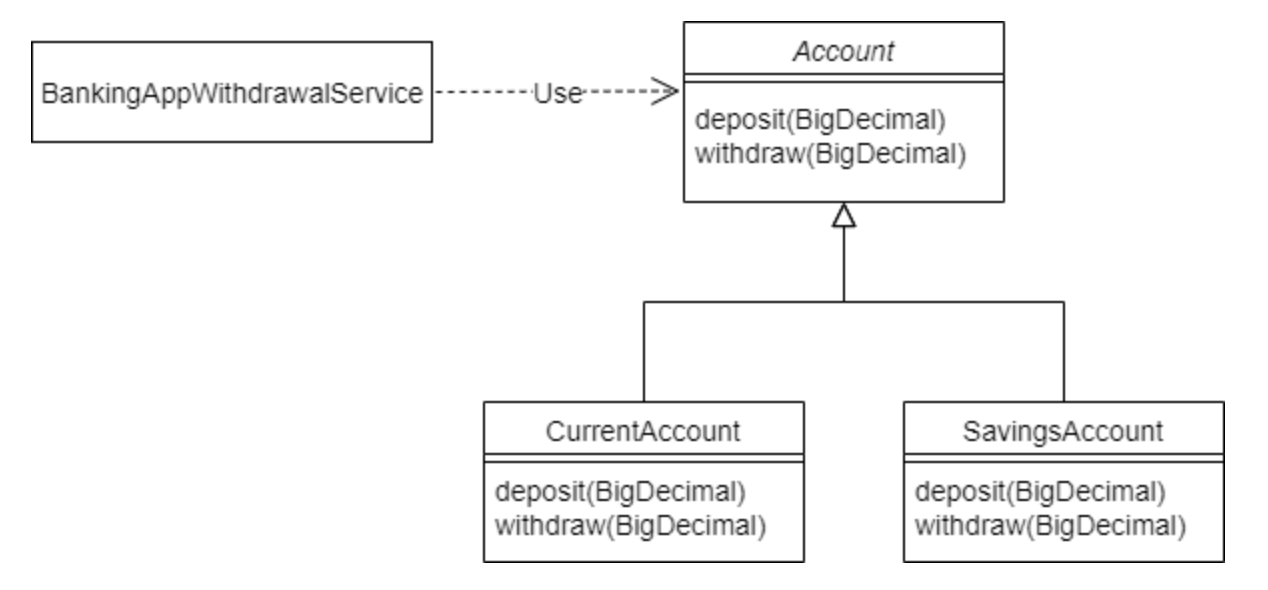 은행 서비스는 더이상 구체적인 계정 클래스에 의존하지 않게 되어 새로운 유형이 도입되더라도 변경할 필요가 없게 됩니다.