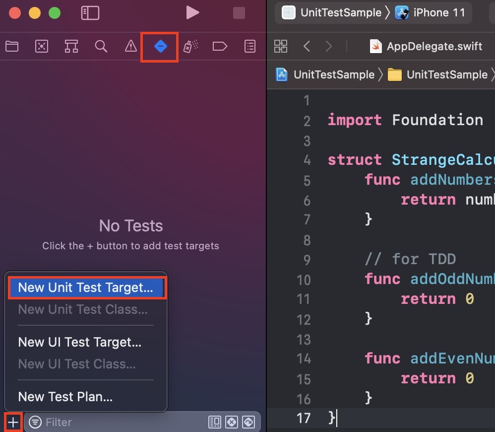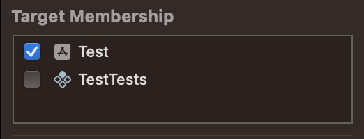 2. 테스트할 파일의 Target Membership에서 Tests파일을 체크