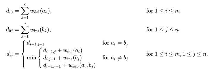 글에서 이야기 하는 것은 2개의 문자열이 주어졌을 때, 편집의 최소 가중치를 이야기한다.