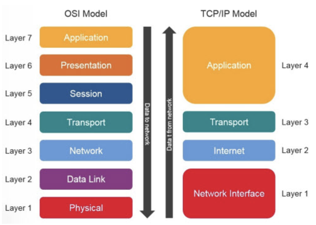 TCP/IP 모델은 실제 네트워크 작동 방식으로 사용되며 OSI는 교육 혹은 개념적인 모델로 사용된다.