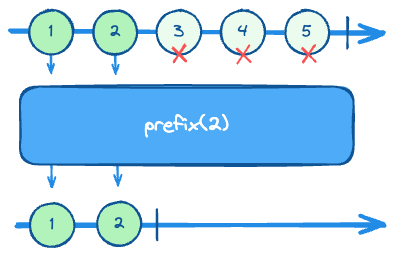 - prefix 계열의 operators는 upstream publisher가 완료하기 전에 방출할 수 있는 값의 수를 제어할 수 있습니다.