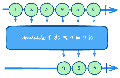 조건을 처음 충족할 때까지 내보내는 모든 값을 무시합니다.