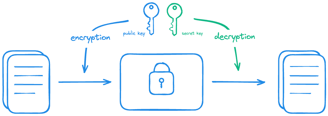 public key를 가진 사람은 정보를 암호화하여 암호문을 생성할 수 있지만, 해당 private key를 아는 사람만 암호문을 해독할 수 있다.