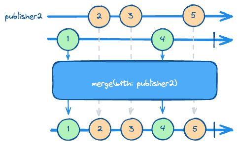 - merge는 여러 publisher의 값을 연결할 수 있습니다.