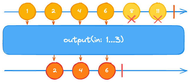 output(in:) 연산자는 지정된 인덱스 범위 내에 있는 값을 내보냅니다.
