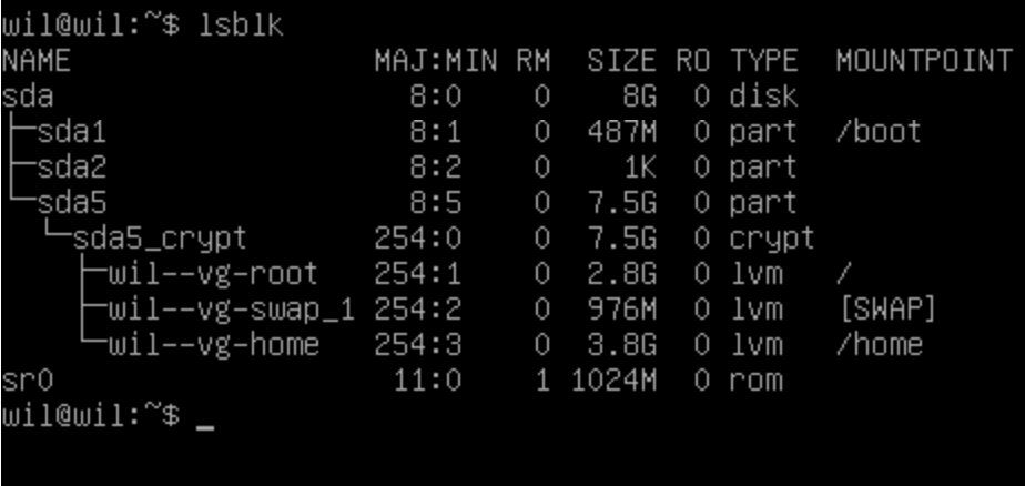 LVM을 사용하여 암호화 된 파티션을 2 개 이상 만들어야합니다. 다음은 예상되는 분할의 예입니다.
