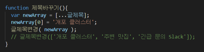 let [글제목, 글제목 변경] = useState(['42서울', '서초 클러스터', '개포 클러스터']);