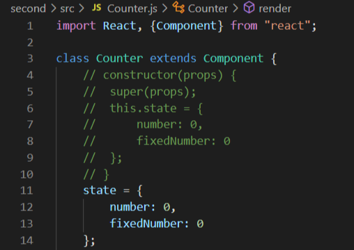 constructor 메서드를 선언하지 않고도 state 초깃값을 설정 가능